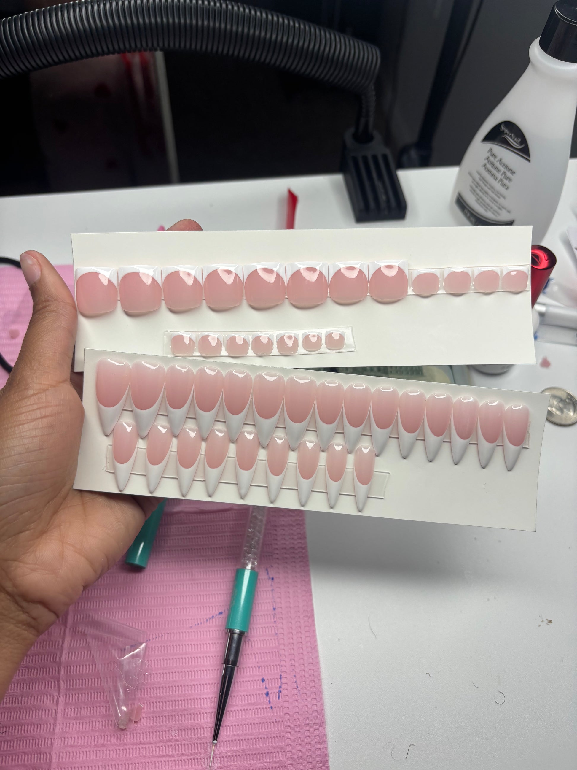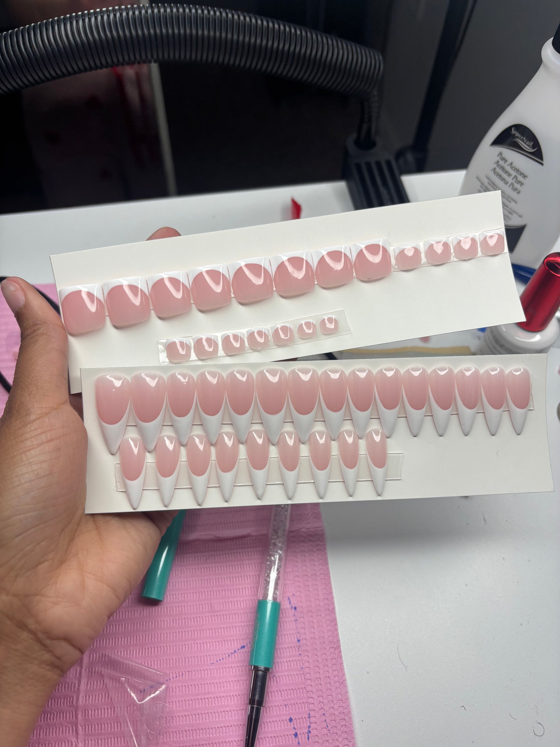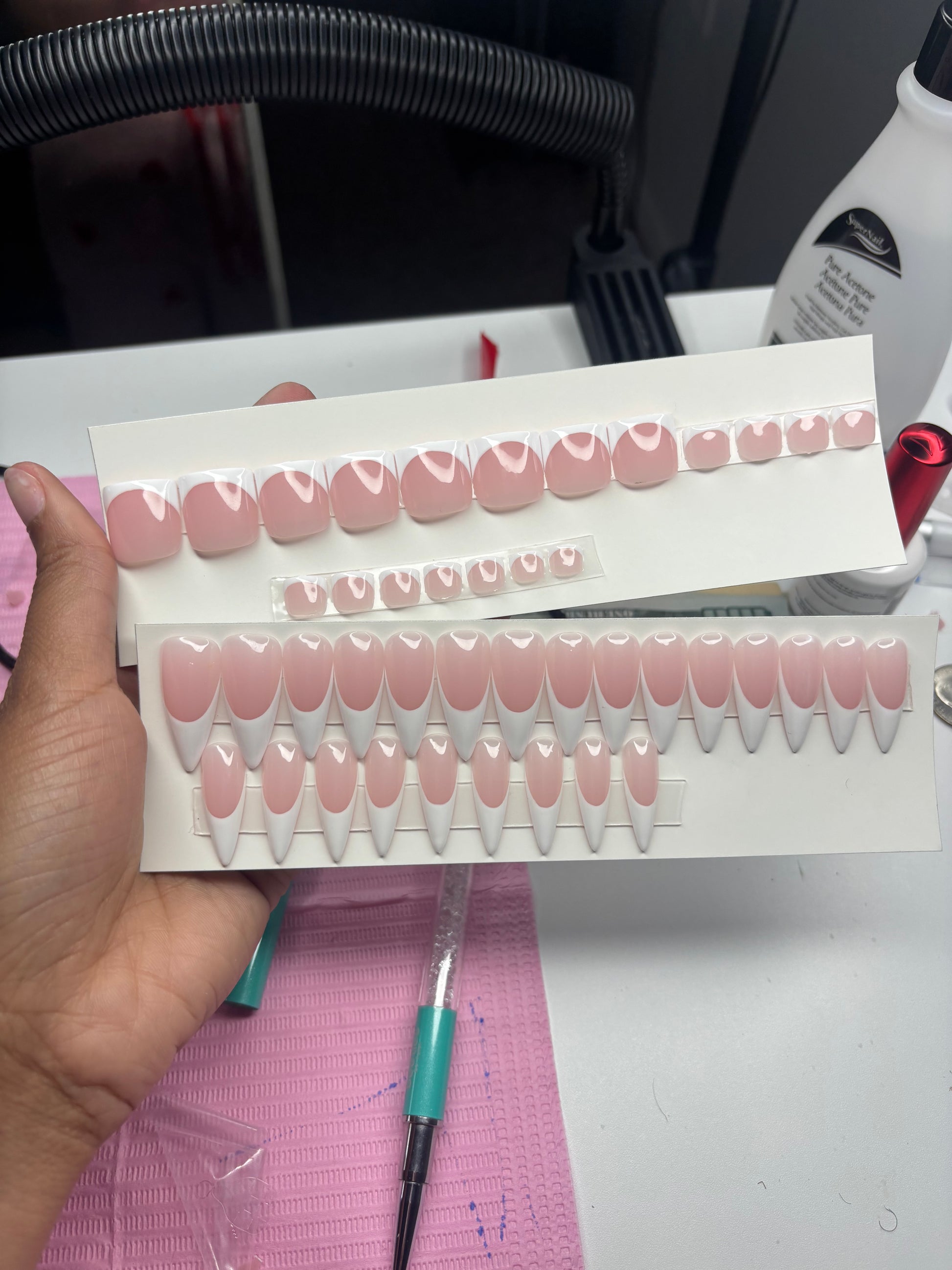 Keep it timeless, classy, and effortlessly chic with French Kissed. This matching hand and toe set features a flawless nude base with crisp white French tips—perfect for everyday elegance or a special occasion. Designed to give you that fresh-from-the-salon look without the wait, French Kissed is a must-have for every press-on lover.