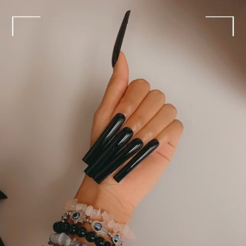 Meet your new obsession. This set is sleek, unapologetic, and made to turn heads. With a jet-black, high-gloss finish and xxl length, this set is made for the bold because subtle was NEVER your style.